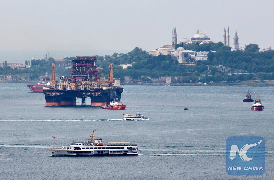 (File photo)Drilling vessel Scarabeo 9, owned by Italian oil service group Saipem, sails in the Bosphorus in Istanbul, Turkey May 21, 2018. (Reuters photo)