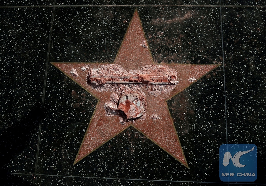 File Photo: Donald Trump's star on the Hollywood Walk of Fame is seen after it was vandalized in Los Angeles, California U.S., October 26, 2016. (Xinhua/REUTERS)