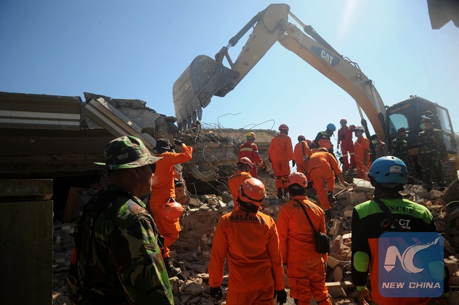 MATARAM, Indonesia, Aug. 8 (Xinhua) -- Indonesian rescuers were intensifying efforts to retrieve victims buried under debris on Wednesday as the death toll of a powerful earthquake hitting the Lombok resort island in Indonesia's West Nusa Tenggara (NTB) province kept rising.
