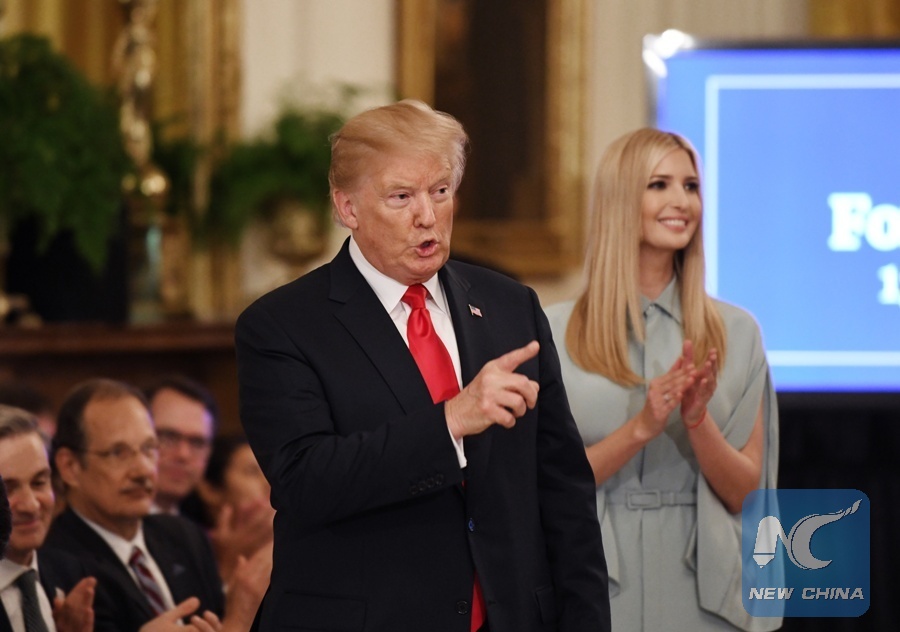 U.S. President Donald Trump speaks during the Pledge to America's Workers event at the White House in Washington, D.C., the United States, on July 19, 2018. (Xinhua/Liu Jie)