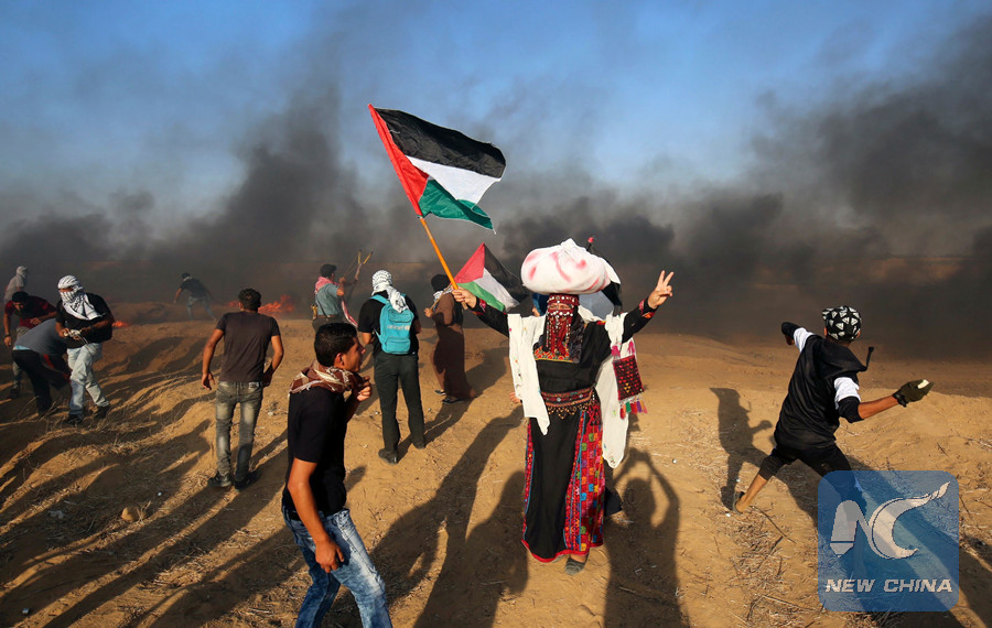 GAZA, Aug. 24 (Xinhua) -- At least 180 Palestinians were injured Friday during clashes with Israeli soldiers in eastern Gaza Strip close to the border with Israel, medics said.