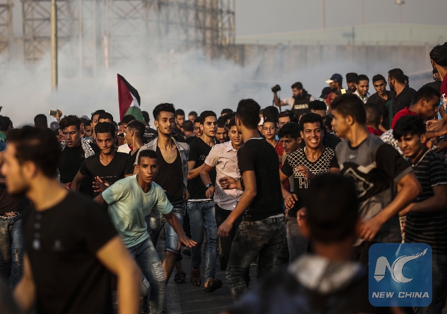 When the demonstrators approached the borders, clashes broke with Israeli soldiers close to Erez Crossing Point on the border between northern Gaza Strip and Israel, the eyewitnesses said.