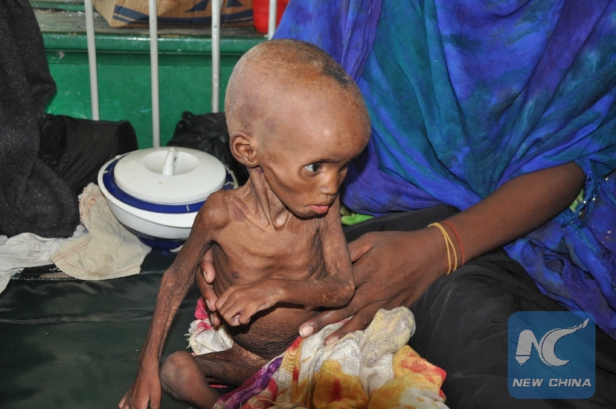 File Photo: A malnourished child is seen at the main Banadir Hospital in Somalia's capital Mogadishu, Aug. 22, 2011. (Xinhua/Faisal Isse)