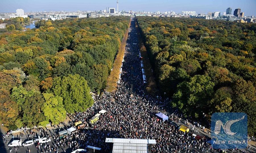 BERLIN, Oct. 14 (Xinhua) -- An estimated 240,000 people rallied across central Berlin on Saturday for an "open and free society" against racism and xenophobia.