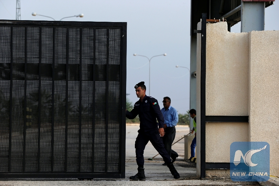 A Jordanian policeman opens the gate of Jordan's Jaber border crossing checkpoint near Syria's Nasib checkpoint, near Mafraq, Jordan, October 15, 2018. (Reuters photo)