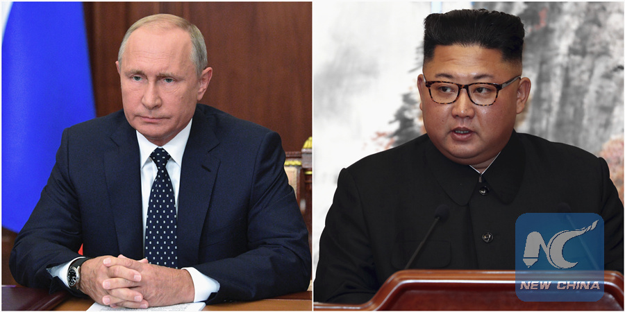 A combination of file photos show Russian President Vladimir Putin and DPRK top leader Kim Jong Un.