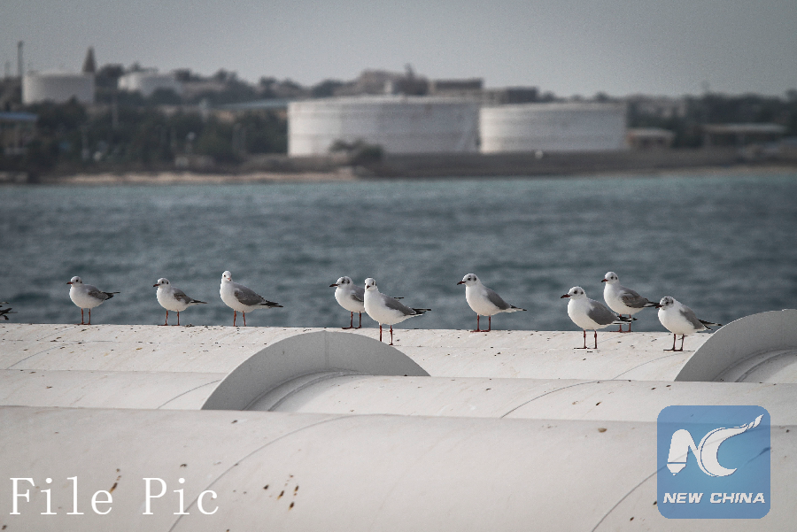 In this file photo taken on Feb. 23, 2016, birds are resting on oil pipelines on Iran's Kharg Island in the Gulf, which serves as a sea port for the export of Iranian oil. (Xinhua)