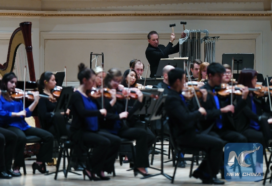The Orchestra stages a closing concert of China Now Music Festival at Carnegie Hall in New York, the United States, on Oct. 22, 2018. (Xinhua/Li Rui)