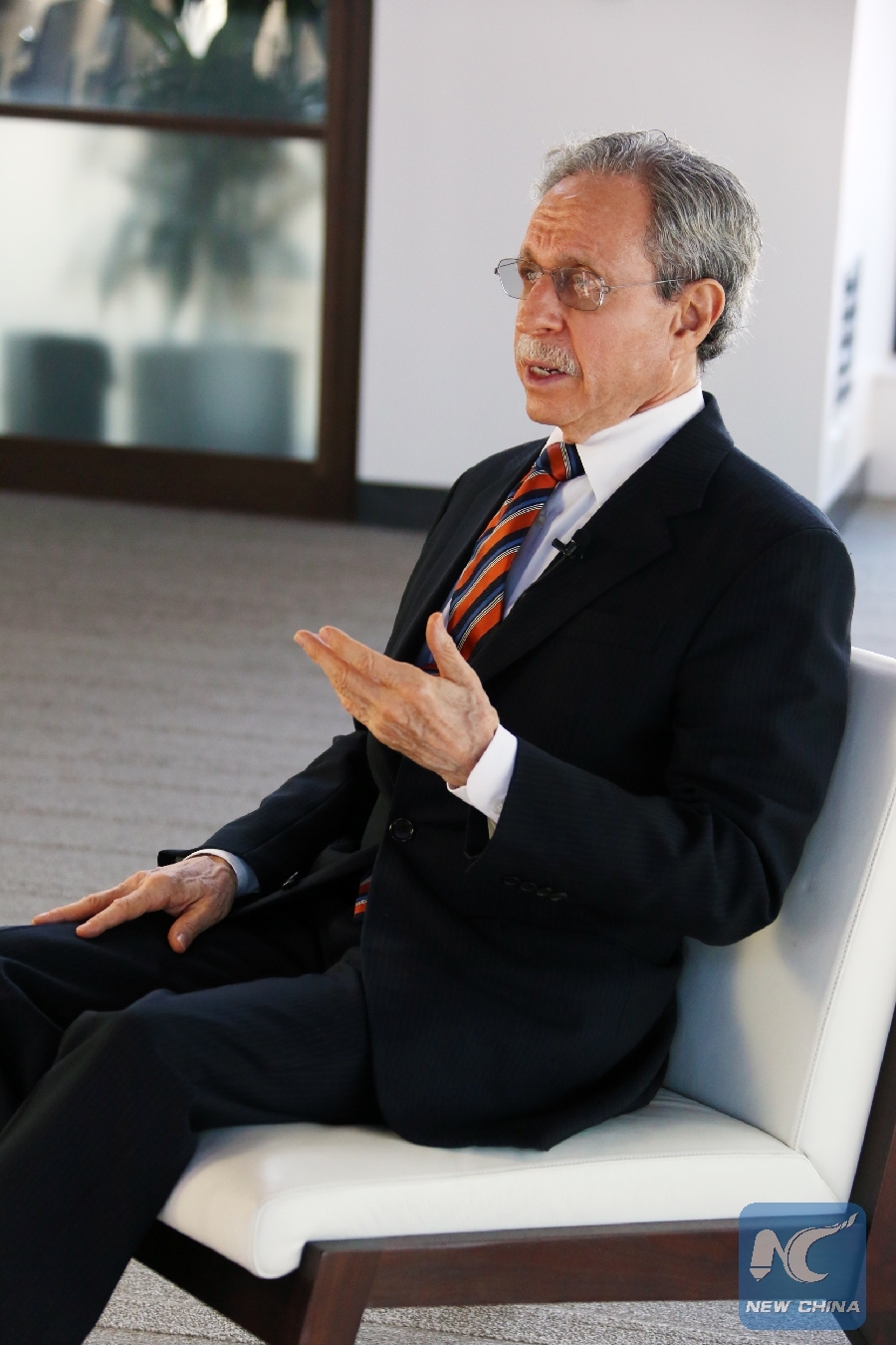 Robert Kuhn, a leading China expert and chairman of the Kuhn Foundation, is interviewed by Xinhua in New York, the United States, on Oct. 23, 2018. (Xinhua/Li Rui)