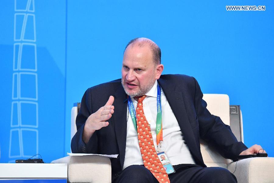 Mark E Tucker, group chairman of HSBC Holdings plc, speaks at the Parallel Session on Trade and Investment of the Hongqiao International Economic and Trade Forum in Shanghai, east China, Nov. 5, 2018.(Xinhua/Li Xin)