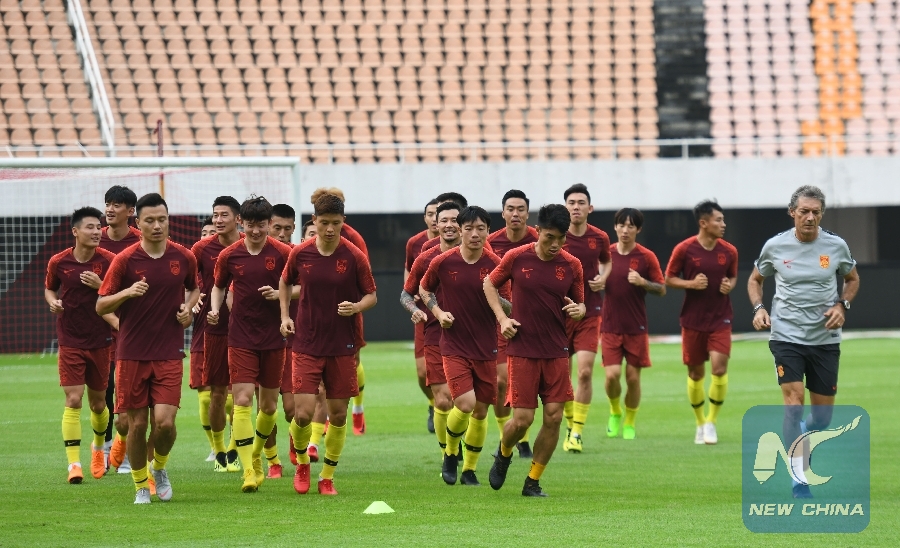 The Chinese football men's national squad was training in Guangzhou, South China on Semptember 3, 2018, preparing for a series of warm-up friendlies. (Deng Hua/Xinhua)