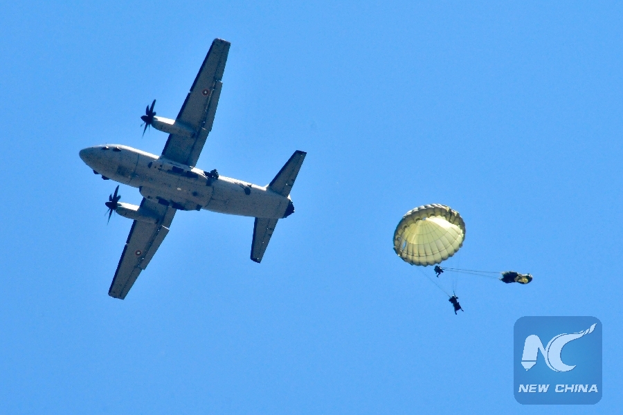 File Photo: A Bulgarian transport aircraft C-27J Spartan and Bulgarian paratroopers participate in the joint Bulgarian-U.S. military exercise at Krumovo Airbase, near Plovdiv, Bulgaria, on July 16, 2015. (Xinhua/Wang Xinran)