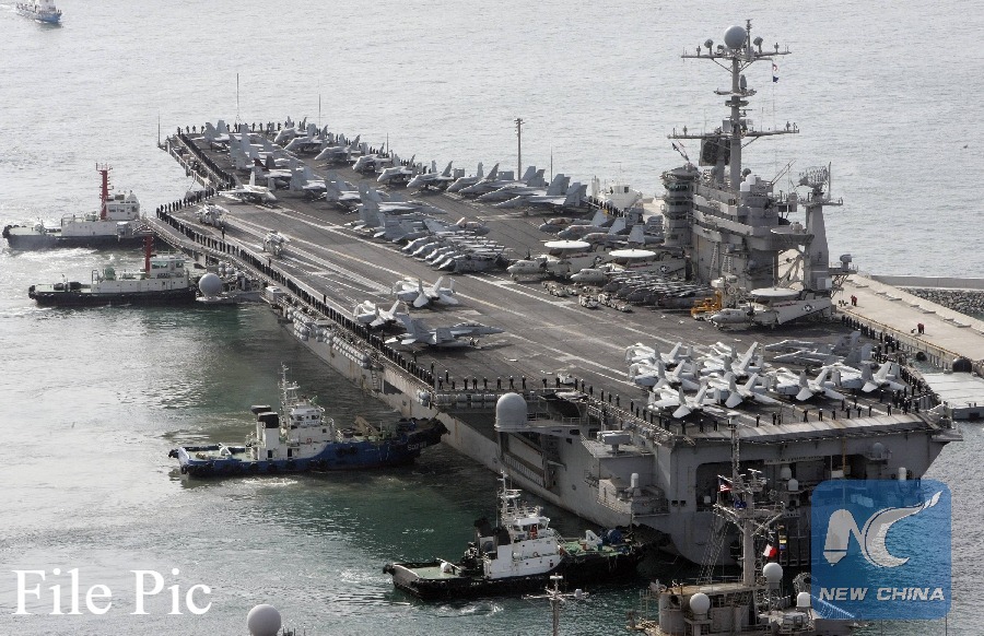 U.S. aircraft carrier USS John C. Stennis arrives at a South Korean naval base in Busan, about 420km southeast of Seoul, on March 11, 2009. (Reuters File photo)