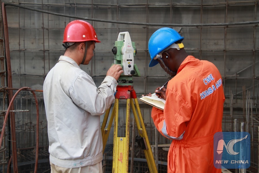 Chinese and Ugandan technicians work at the construction site of Isimba Power Plant Project in Kayunga district, Uganda, Aug. 8, 2017. As River Nile, the longest in the world, snakes through central Uganda, Chinese engineers and their local counterparts are constructing a multi-million U.S. dollar power plant on its bank in the remote Kayunga district. (Xinhua/Zhang Gaiping)
