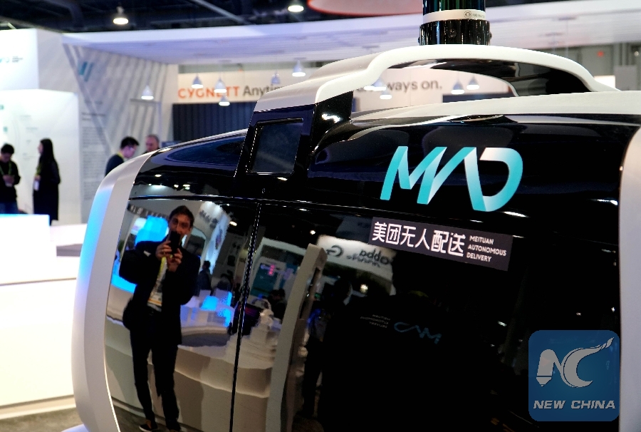 Photo taken on Jan. 8, 2019 shows the Autonomous Delivery of Meituan, a Chinese internet giant, during the Consumer Electronics Show (CES) in Las Vegas, the United States. (Xinhua/Wu Xiaoling)