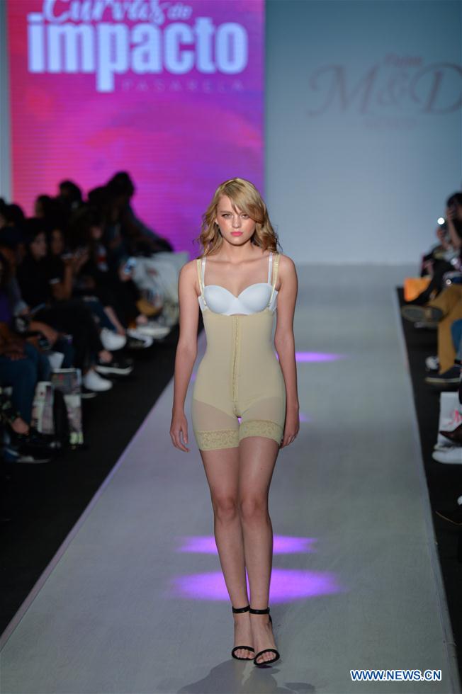 A model presents a creation of Fajas M&D during the Intermoda 2019 Fashion Show in Guadalajara, Mexico, on Jan. 17, 2019. (Xinhua/Xin Yuewei)