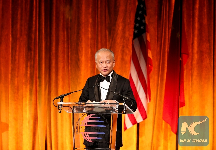File Photo: Chinese Ambassador to the United States Cui Tiankai delivers a keynote speech during the Chinese Lunar New Year of the Pig Gala in New York, the United States, Jan. 7, 2019. (Xinhua/Wang Ying)