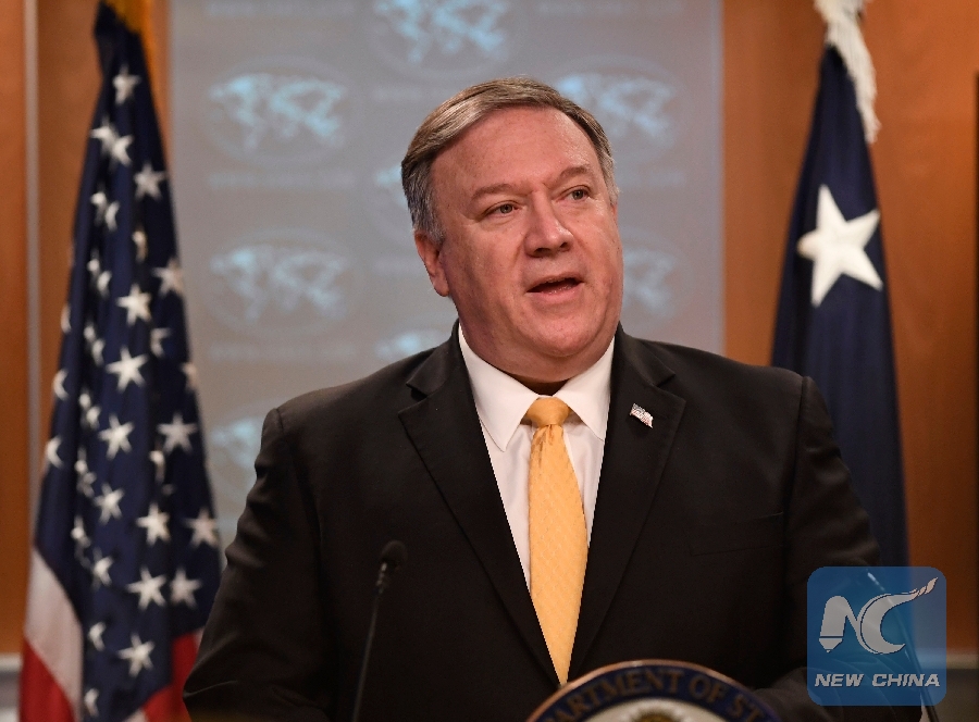 File Photo: U.S. Secretary of State Mike Pompeo speaks during a press briefing in Washington D.C., the United States, Feb. 1, 2019. (Xinhua/Liu Jie)