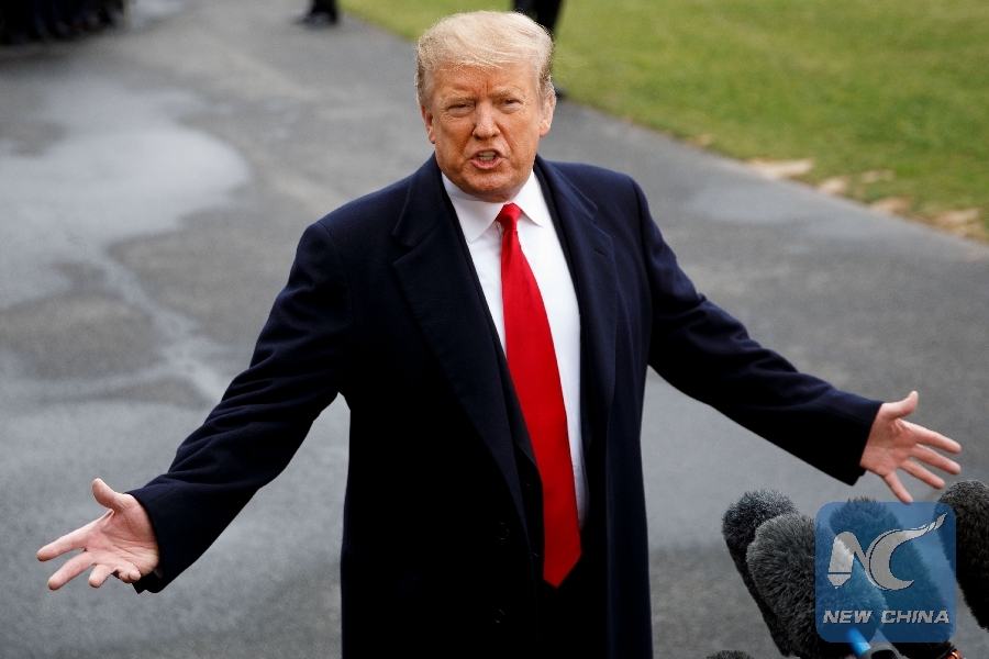 File Photo: U.S. President Donald Trump speaks to reporters on the South Lawn before departing from the White House in Washington D.C., the United States, March 22, 2019. (Xinhua/Ting Shen)