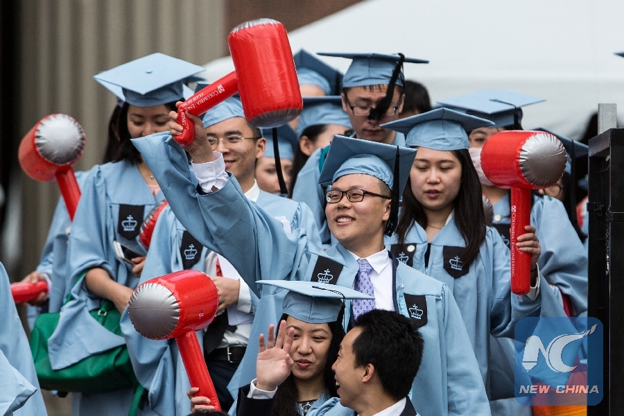 File Photo: Members of the graduating class of 2016 attend the commencement ceremony of the 262nd Academic Year of Columbia University in New York, the United States on May 18, 2016. (Xinhua/Li Muzi)