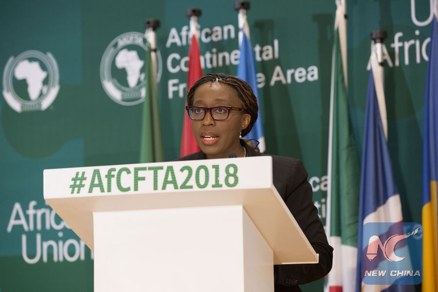 File photo shows Vera Songwe, Under-Secretary-General of UN and Executive Secretary of the UN Economic Commission for Africa, speaking during an African Union (AU) Executive Council meeting in Kigali, capital city of Rwanda on March 19, 2018. (Xinhua/Gabriel Dusabe)