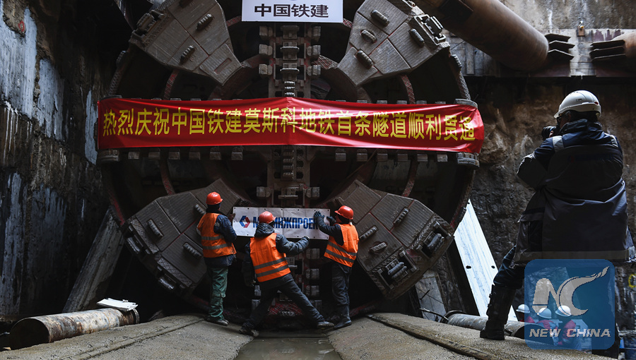 MOSCOW, April 16 (Xinhua) -- Chinese engineers and workers are busy tunneling in southwest Moscow using domestic equipment and technology for a new metro line of the city.