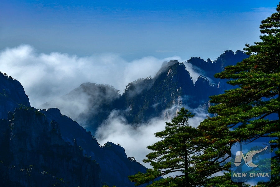 Located in east China's Anhui Province, the mountain range is famous for its magnificent scenery of granite peaks, rocks, pine trees, sunrise and sunset amid clouds.
