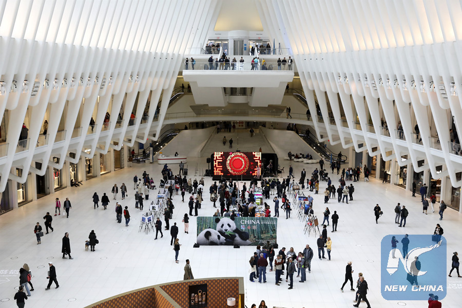 Visitors attend a Huangshan tourism promotion event at World Trade Center station in New York, the United States, May 3, 2019. (Xinhua/Wang Ying)