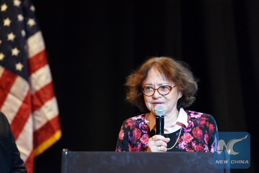 Cynthia Chennault, daughter of Flying Tigers General Claire Chennault, addresses the opening ceremony of the Flying Tigers History Conference in Las Vegas, the United States, May 10, 2019. (Xinhua/Han Fang)