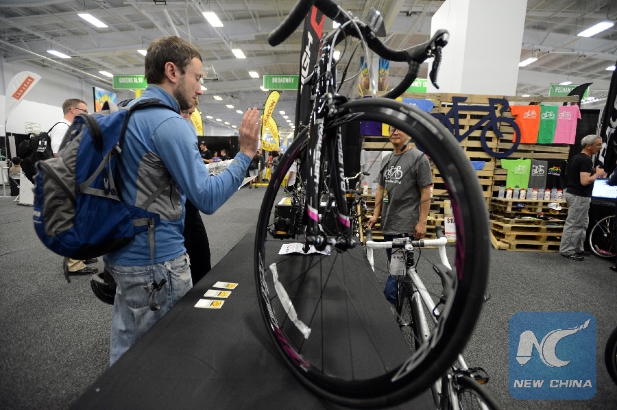 File Photo: A bike fan visits the 2013 Bike Expo New York in New York City, the United States, May 3, 2013. (Xinhua/Wang Lei)