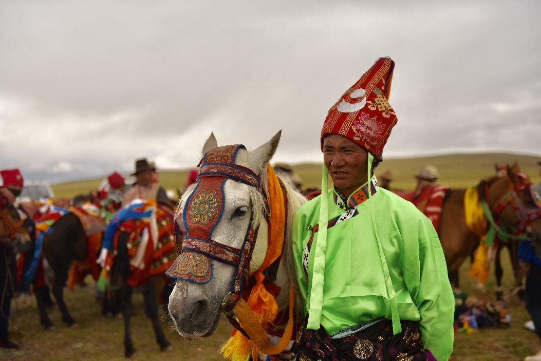 Urgyen stands with his horse in Ngari Prefecture, southwest China's Tibet Autonomous Region. (Xinhua/Zhou Jianwei)