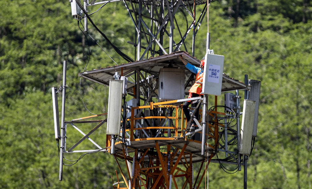 A technical worker installs 5G devices in Dulongjiang Township, southwest China's Yunnan Province. (Xinhua/Jiang Wenyao)