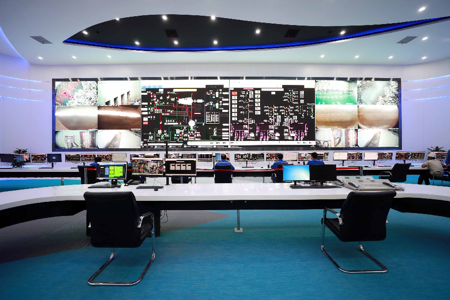 Photo taken on June 28, 2019 shows the central control room of the second phase of a waste-to-energy plant in Shanghai, east China. (Xinhua/Shanghai Chengtou Group Corporation)