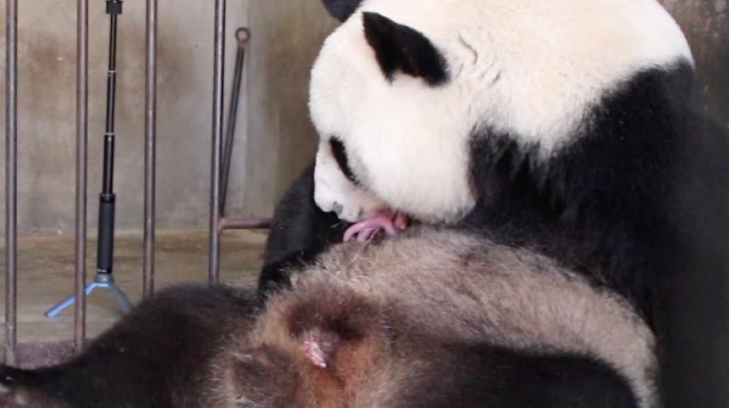 The 19-year-old mother, Zhu Zhu, underwent artificial insemination in March and her gestation period this time was 105 days. The staff at the base took immediate measures after the experienced mother started to show prenatal behaviors Tuesday.