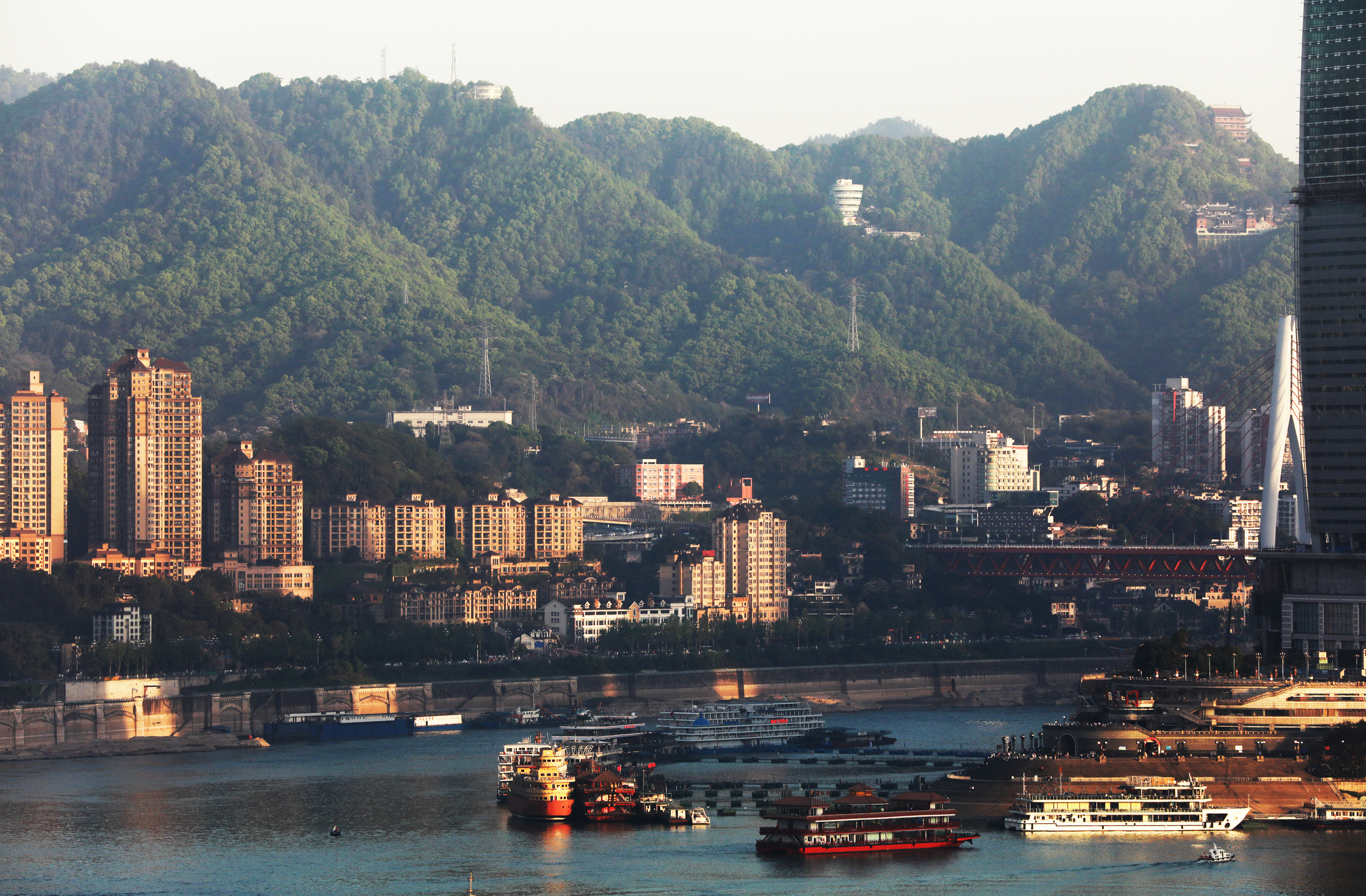 Ships are seen at Chaotianmen wharf in southwest China's Chongqing, April 7, 2019. (Xinhua/Wang Quanchao)