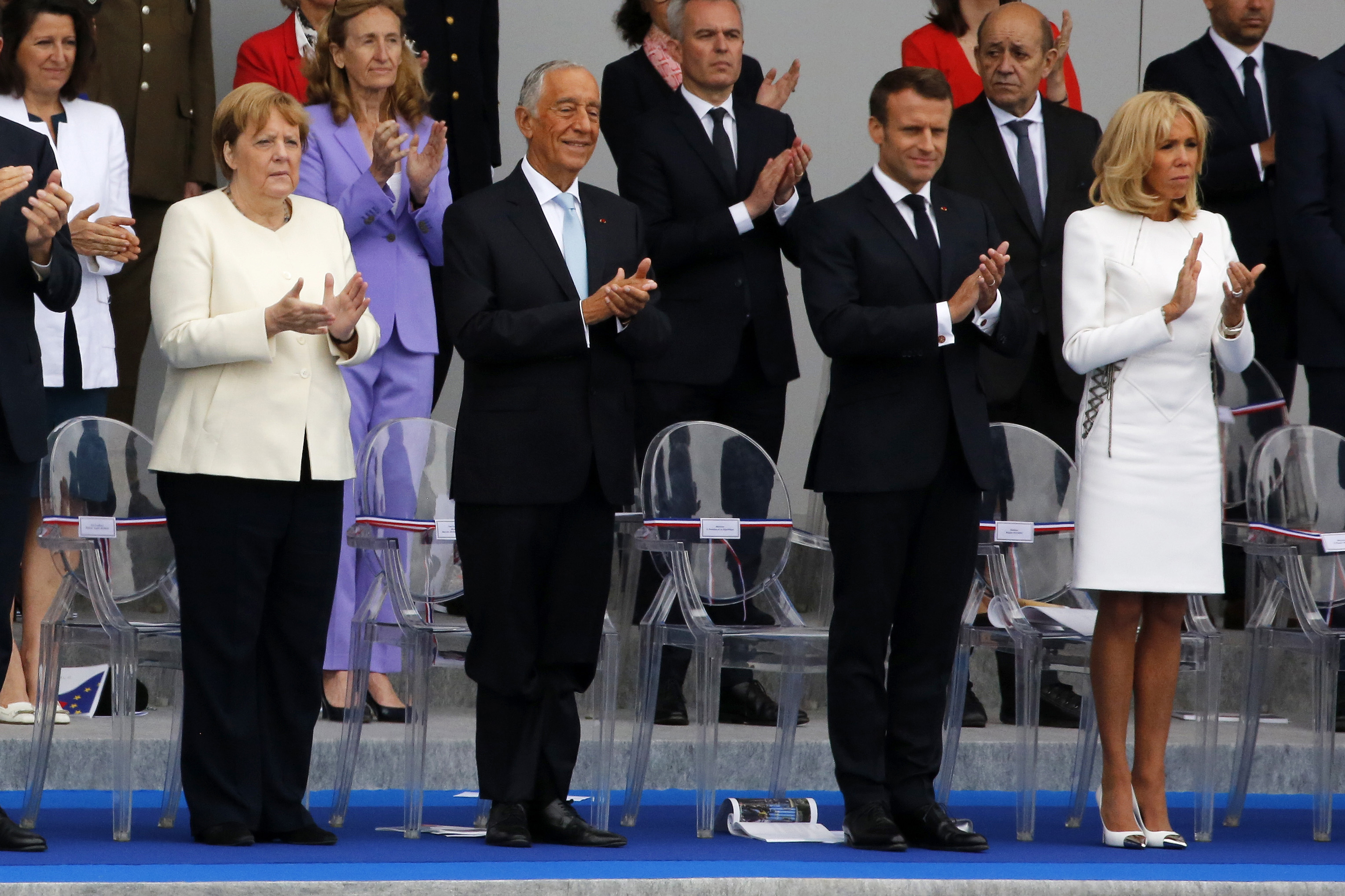 France's President Emmanuel Macron(2nd R) called for European defense cooperation ahead of a traditional military parade celebrating the country's annual Bastille Day on July 14, 2019.(Xinhua/Jack Chan)
