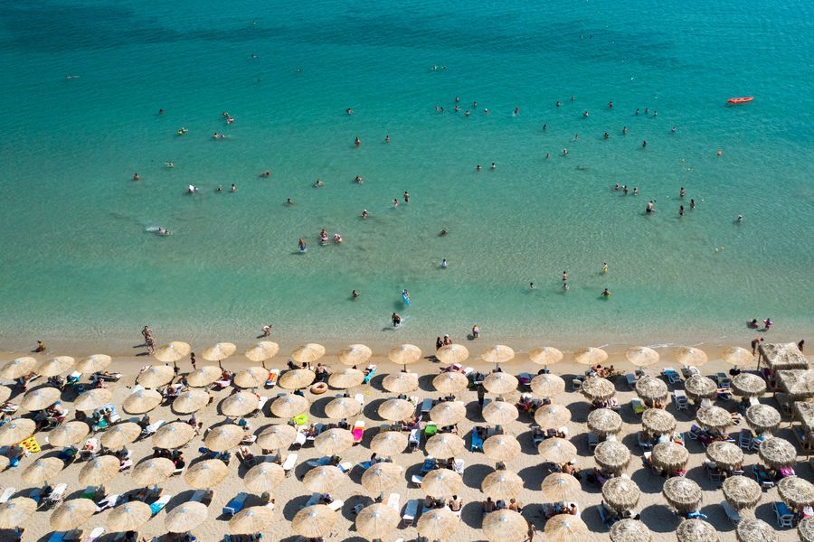 An aerial view of Varkiza, one of the largest and most popular beaches of Attica, in Athens, Greece.(Xinhua/Lefteris Partsalis)