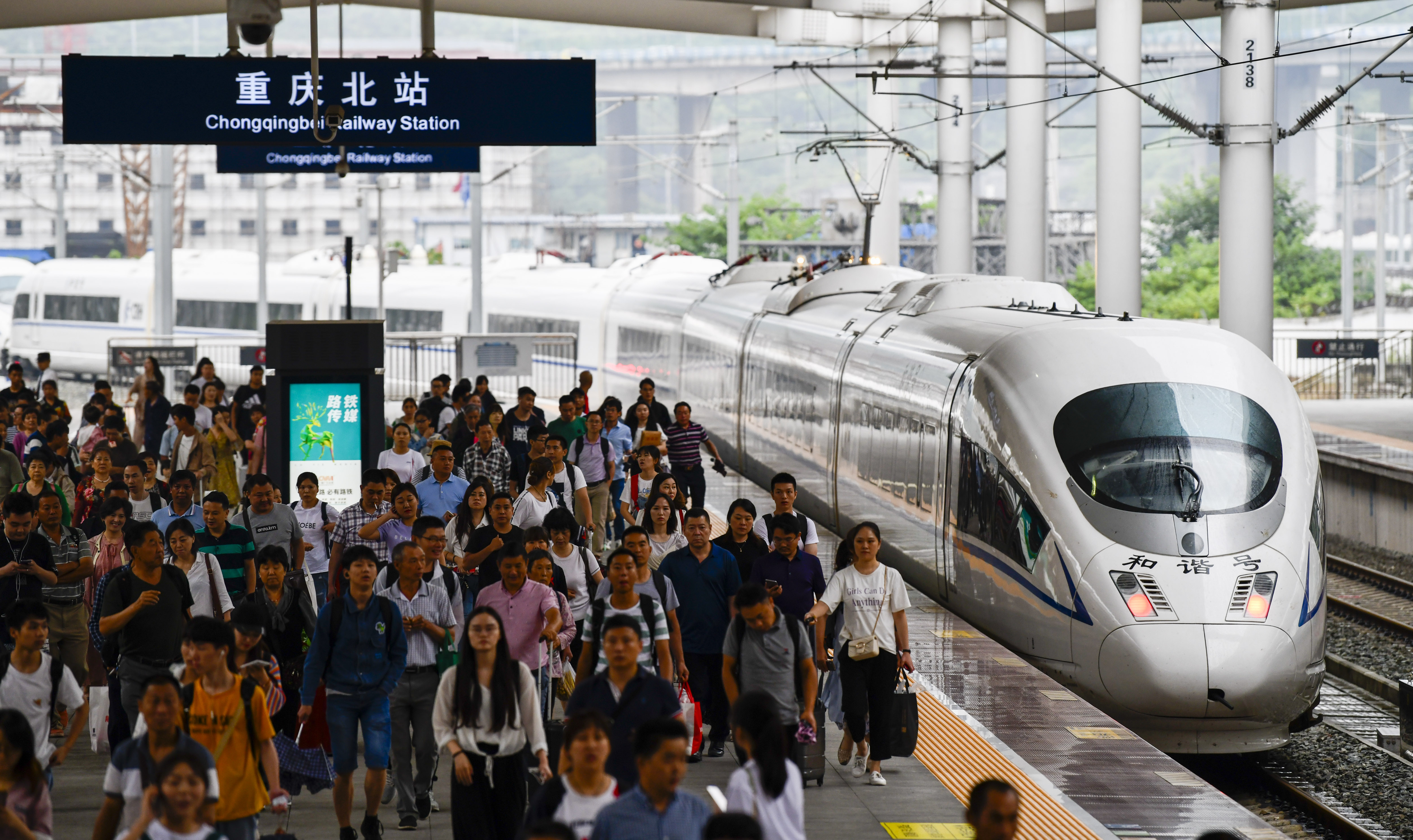A high-speed train heading to Chengdu of southwest China's Sichuan Province departs from Chongqing North Railway Station in southwest China's Chongqing, June 11, 2019. (Xinhua/Liu Chan)
