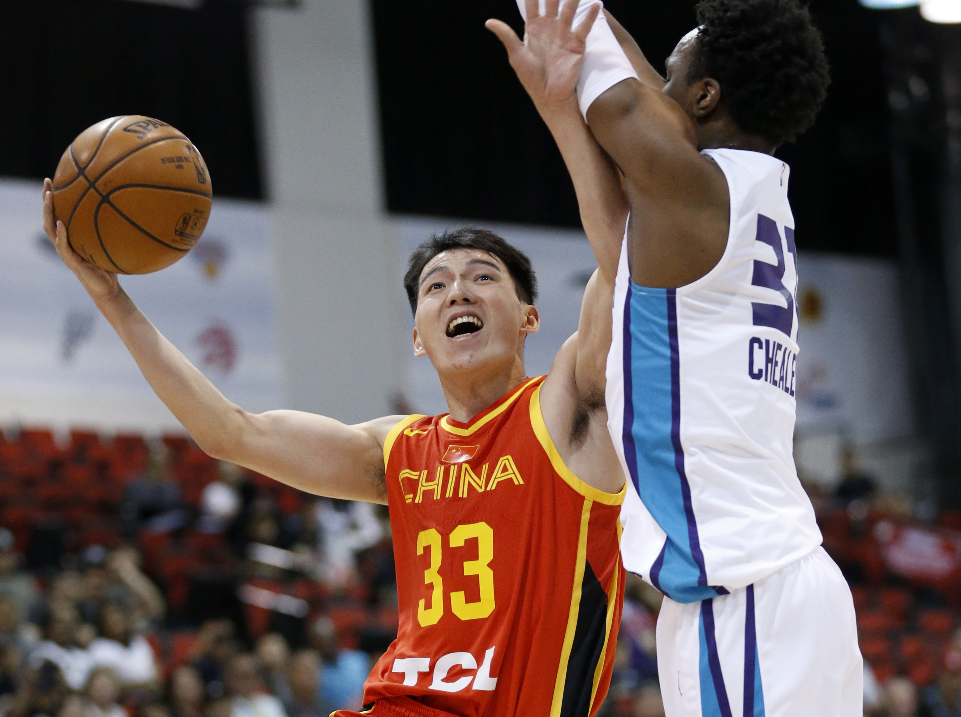 Chinese player Hu Jinqiu grabs a rebound at 2019 Summer League in Las Vegas (Xinhua/Li Ying)