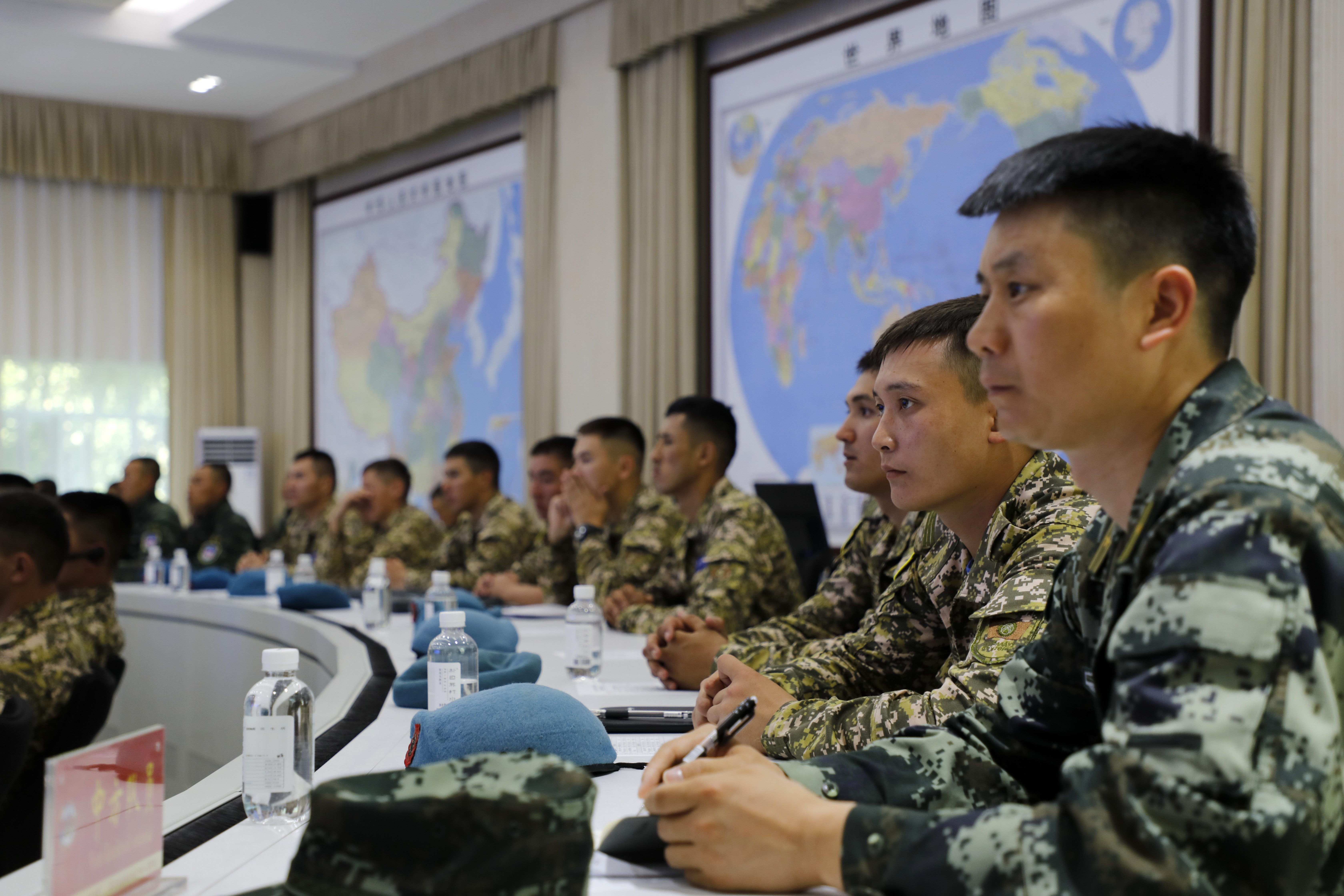 Personnel from the National Guard of Kyrgyzstan attend a seminar in Urumqi, northwest China's Xinjiang Uygur Autonomous Region, Aug. 6, 2019. (Xinhua/Liu Fang)