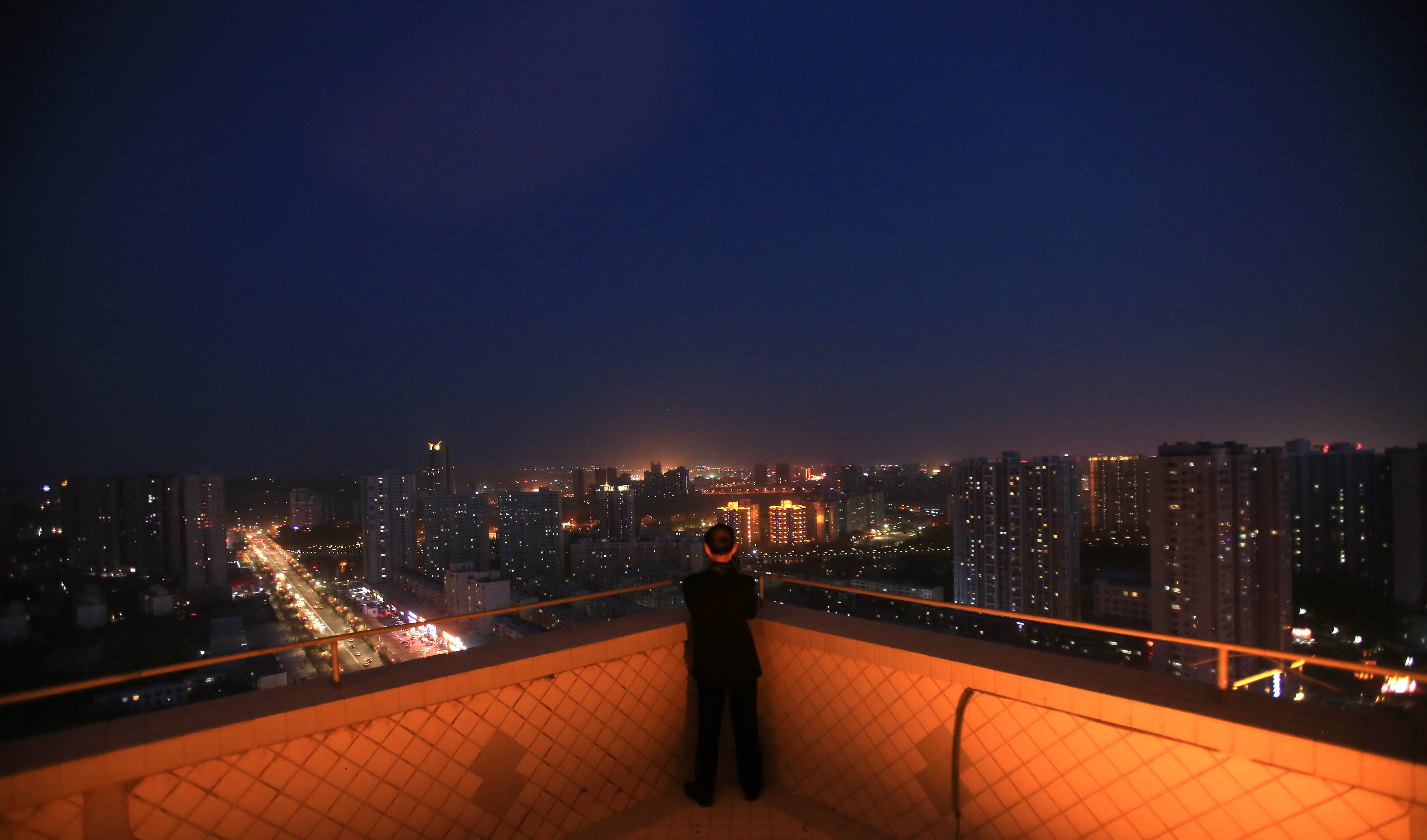 Li has walked to the furthest area of the city to shoot the landscape he desired.