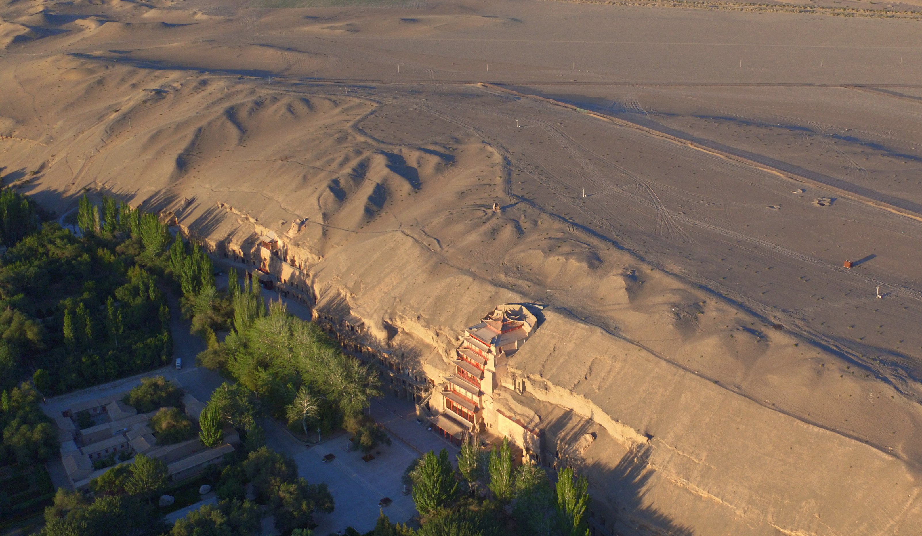 A view of the Mogao Grottoes in Dunhuang, northwest China's Gansu Province. (Xinhua/Chen Bin)