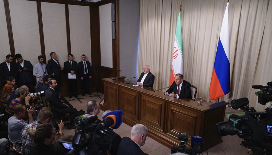 Russian Foreign Minister Sergei Lavrov and his Iranian counterpart Mohammad Javad Zarif attend a joint press conference following their talks in Moscow on Sept. 2, 2019. (Russian Foreign Ministry Photo)