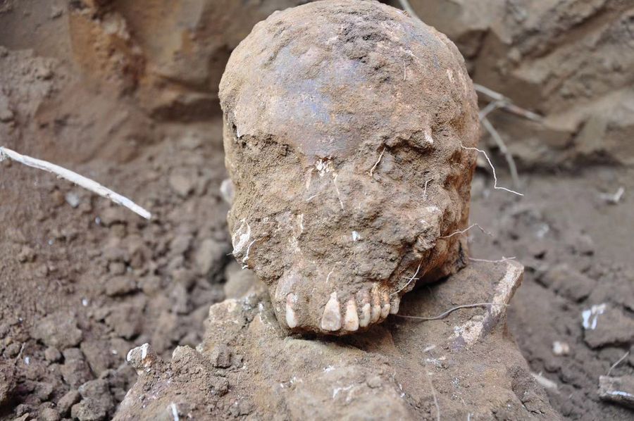 One of the remains found at a tomb of unknown soldiers in Pingyao County, north China's Shanxi Province. (Photo provided by Fudan University)