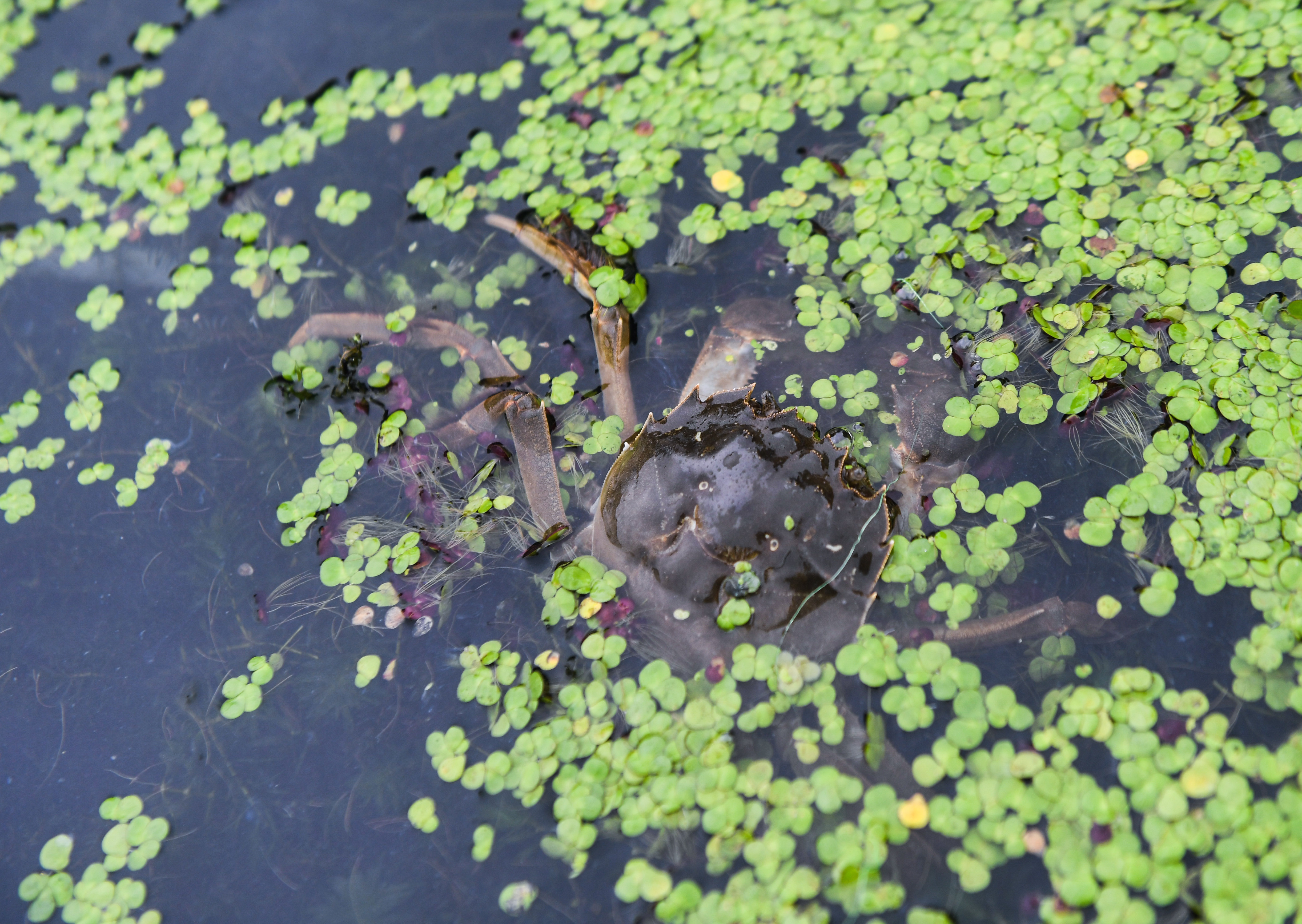 Photo taken on Sept. 4, 2019 shows a crab raised at an aquaculture cooperative in Zhili Township of Huzhou, east China's Zhejiang Province.(Xinhua/Xu Yu)