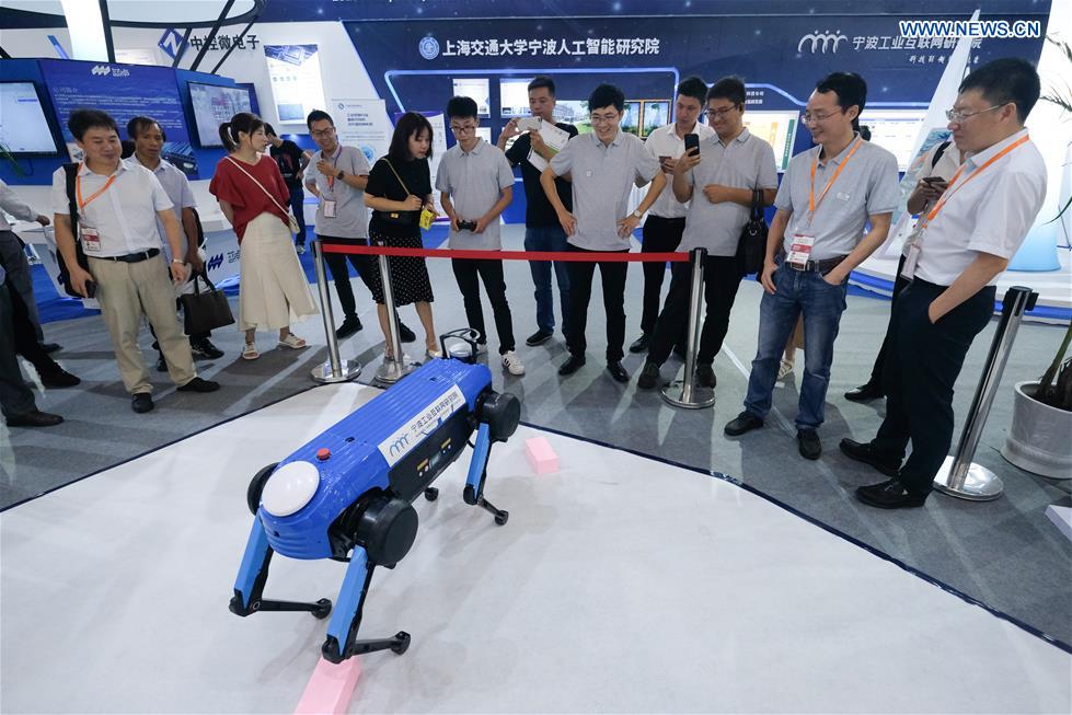 Visitors admire a robot on display at the 9th China Smart City and Intelligent Economy Expo in Ningbo, east China's Zhejiang Province, Sept. 6, 2019. Unveiled here on Friday, the 9th China Smart City and Intelligent Economy Expo showcases latest products and technologies in the area. (Xinhua/Xu Yu)