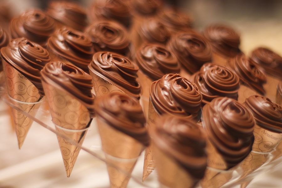 Chocolate candies are seen in a shop in Brussels. (Xinhua/Zheng Huansong)