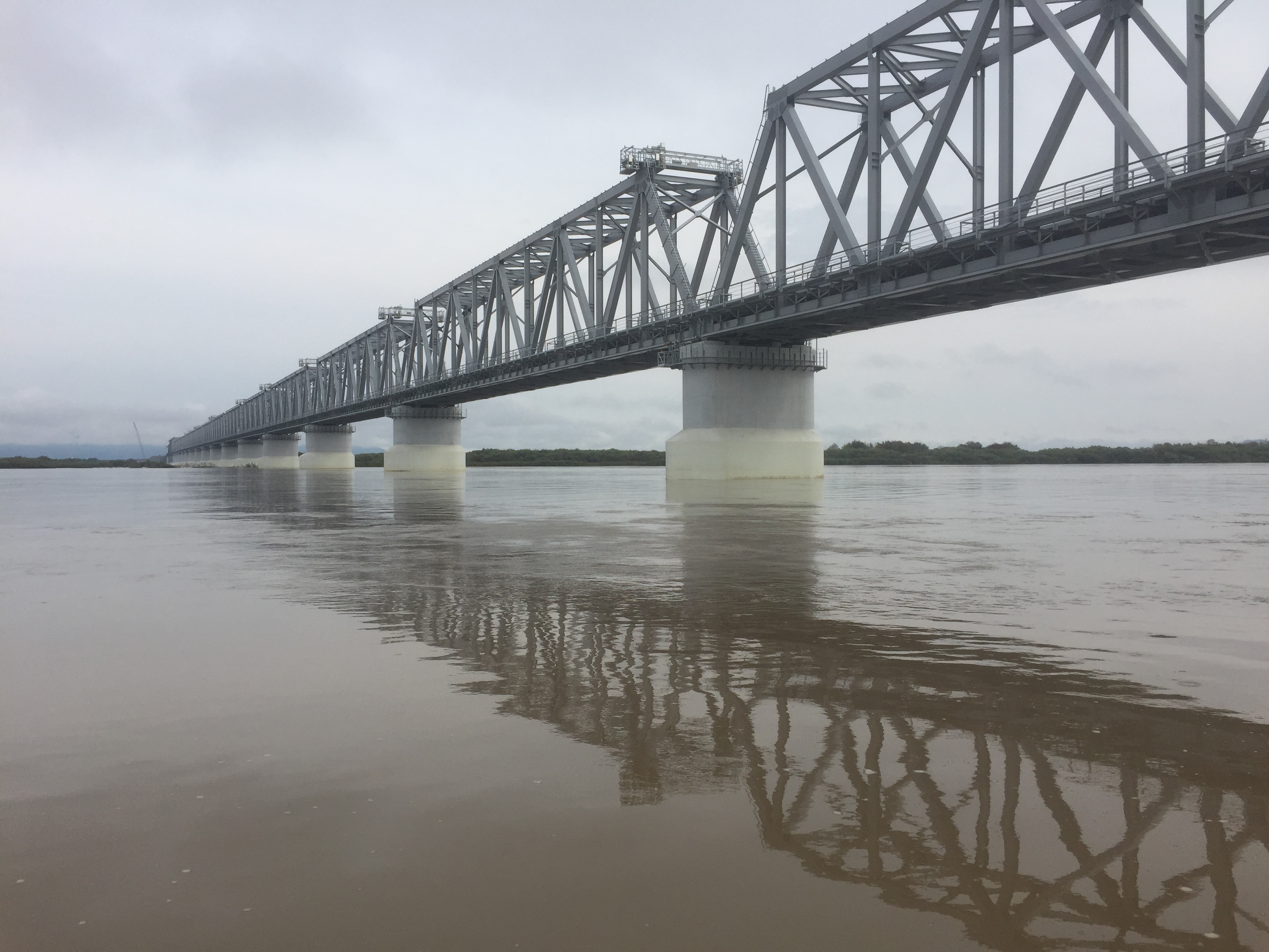 Mobile photo taken on Sept. 7, 2019 shows the first railway bridge which connects Nizhneleninskoye in Russia with the border city of Tongjiang in Heilongjiang, China. (Lin Yonghan/Handout via Xinhua)