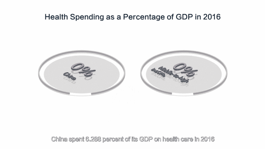 China's spending on health care is growing at a faster rate than the fiscal expenditure in general. China spent 6.288 percent of its GDP on health care in 2016.