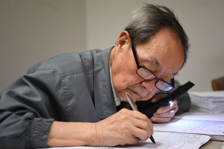 Yuan, a doctor at Xiangya Hospital, Central South University in the city of Changsha, central China's Hunan Province, has been spending his time working on the medical records at the hospital after retirement.